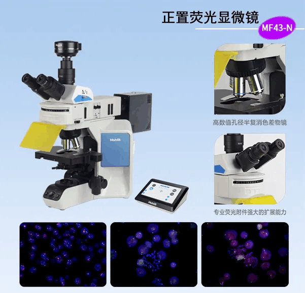 1、高性能熒光顯微鏡:明美MF43-N熒光顯微鏡,配備6孔落射熒光模塊,支持多通道熒光檢測(cè),確保高信噪比的熒光成像。