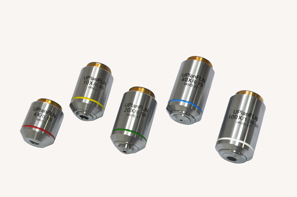 半復熒光物鏡:高數值孔徑的半復熒光物鏡,擁有高清晰度與熒光透過率等性能,在明場熒光下成像銳利,能滿足各個熒光領域的觀察。